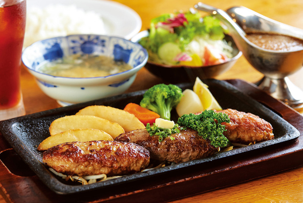 「とちぎ和牛」「日光HIMITSU豚」など、栃木県のブランド肉を使ったハンバーグやステーキが名物。ランチタイムのセットメニューは10種類以上あり、味もボリュームも満点!