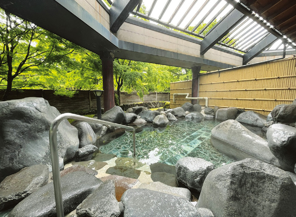 源泉100%の湯が自慢の市営温泉施設。石組みの露天風呂から見渡す山並みや木々の景色にも癒される。23年4月に売店がリニューアルオープン。