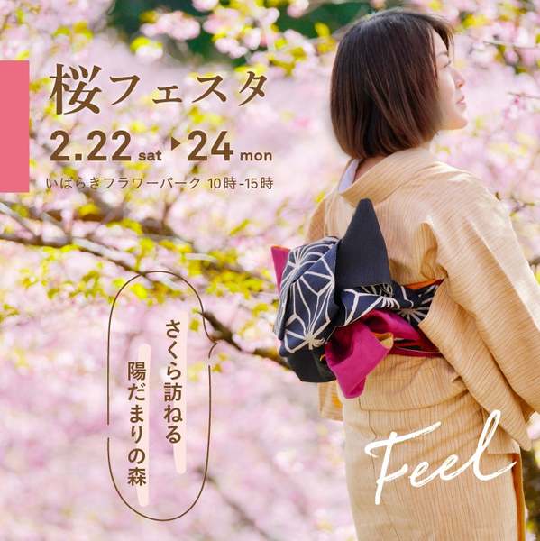 いばらきフラワーパークは、「見るから感じる」体感型の施設として2021年4月にリニューアルオープン。今回の「桜フェスタ」では、河津桜から始まりソメイヨシノなど多彩な桜を楽しむことができる。イベント期間中は、着物の着付けやレンタルサービス、フォトイベントが行われ、和装での特別な時間を満喫できる機会を提供する。