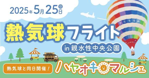 5月25日、茨城県ひたちなか市の親水性中央公園で「熱気球フライト in 親水性中央公園」を開催する。このイベントは昨年も大好評だったもので、今年は新たに「ハヤオキ☆マルシェ」も同時開催される。参加費用は大人3,000円、子ども2,000円となり、らぽくらぶ会員は先着で割引があるという。