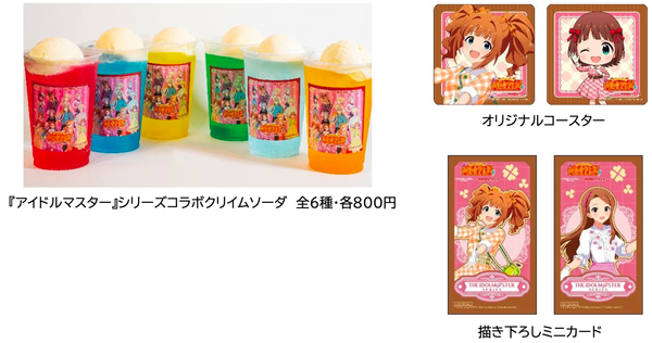 フードにおいては各ブランドカラーをイメージしたクリイムソーダが登場し、注文によりランダムでアイドルデザインのコースターをもらえる。スタンプラリーを全て集めるとオリジナルクリアカードのプレゼントもあるという。料金は800円で、おみやげ萬屋雑貨店で販売されている。