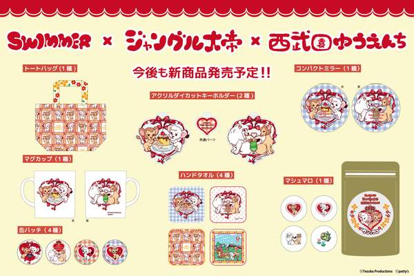このコラボレーションでは、『ジャングル大帝』の動物たちがSWIMMERのレトロかわいいタッチで描かれ、西武園ゆうえんちの風景を彩る。また、期間中は「レッツゴー!レオランド」のミルクホールがコラボレストランとして装飾され、カラフルなコラボメニューとして、ソフトクリームソーダや揚げパン、ソース焼きそばパンなどが販売されるとのこと。