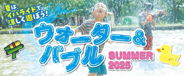 茨城県稲敷市にある「こもれび森のイバライド」では、7月10日から夏休み期間中の毎週末、「ウォーター&バブル SUMMER2025」と題した水遊びイベントが開催されている。