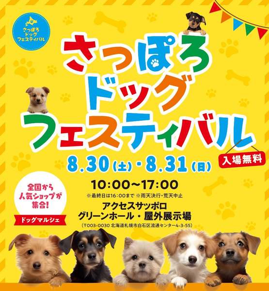 また、「さっぽろドッグフェスティバル」も同時開催。全国からショップが約15社登場し、手づくり商品から輸入商品などを販売する。ワンちゃんと一緒に遊べるアジリティー体験やトリミングコーナーなど、ペットと一緒に楽しめるコンテンツが充実している。
