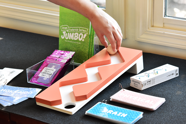 「itten」は、「一点を競うゲームを通じて、その場の状況が一転するような楽しい体験を」というコンセプトの下、美しい木製コンポーネントとユニークなゲームアイデアで国内外から注目を集めているメーカー。展示の注目は『3秒トライ!』。ドタバタのかけ引きと、真剣ながらちょっとナンセンスな挑戦で盛り上がるゲームだ。