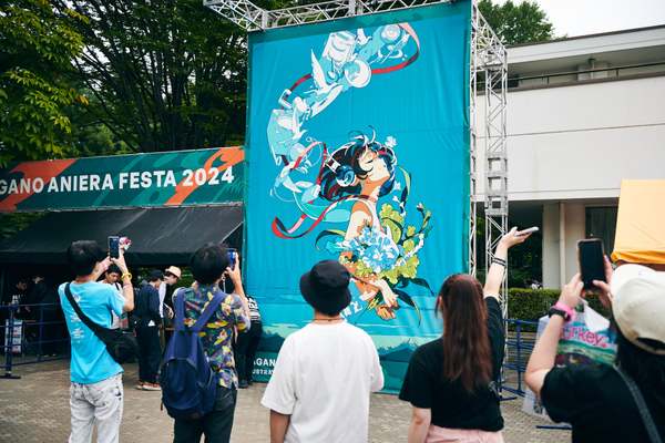 米山舞氏が手掛けたキービジュアルは、長野県の自然に囲まれたお祭りを表層に、伝統的なアニメ文化やフェス・音楽文化への感謝や尊敬などへの感謝を表現。会場での大型装飾としての展示も予定されている。