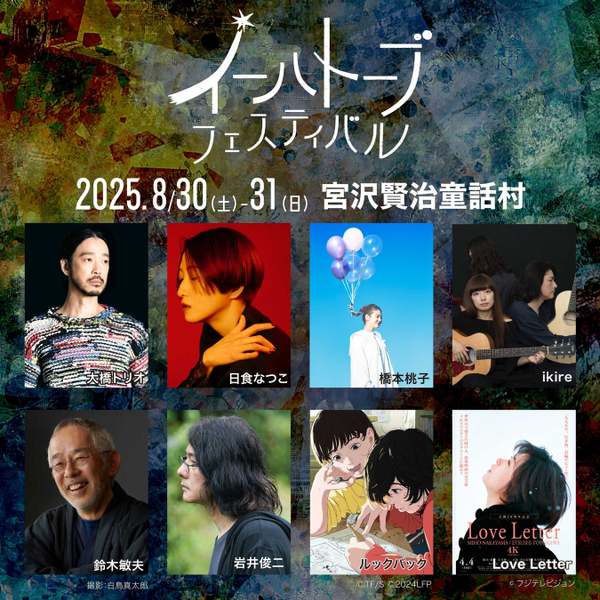 イーハトーブフェスティバルは、童話作家・詩人である宮沢賢治の作品に影響を受けたクリエイターやアーティストたちが参加。今年は大橋トリオ、日食なつこ、ikireといったアーティストによる音楽ライブや、スタジオジブリの鈴木敏夫氏や映画監督の岩井俊二氏を迎えたトークショーが行われる。また、アニメ映画『ルックバック』や映画『Love Letter』の上映も予定している。