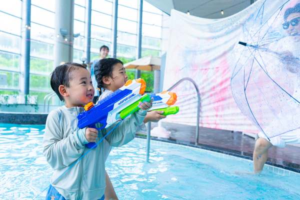 ウォーターバトルを水着着用のお風呂で楽しむ「カラフルシューティング」は、9月1日から10月31日の土日祝に開催。色水を使ったシューティングイベントで、制限時間内に自陣のチームが勝利すれば特別なプレゼントがもらえる。