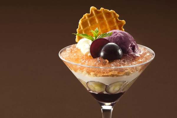 フェアではノーザンテラスダイナーのテーブルオーダーのスイーツバイキング「THE SWEETS!」、ロビーラウンジ ミザールの「グランシャリオプレート」、ラウンジ・バー オールドサルーン1934の「巨峰のパフェ」などが楽しめる。どれもぶどうの甘さと酸味が存分に活き、美しい盛り付けも自慢だ。