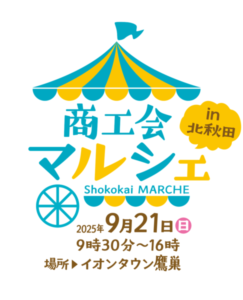 「商工会マルシェ in 北秋田」を2025年9月21日に開催する。会場はイオンタウン鷹巣で、時間は9:30から16:00まで。入場は無料。