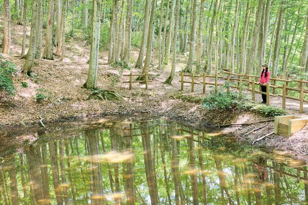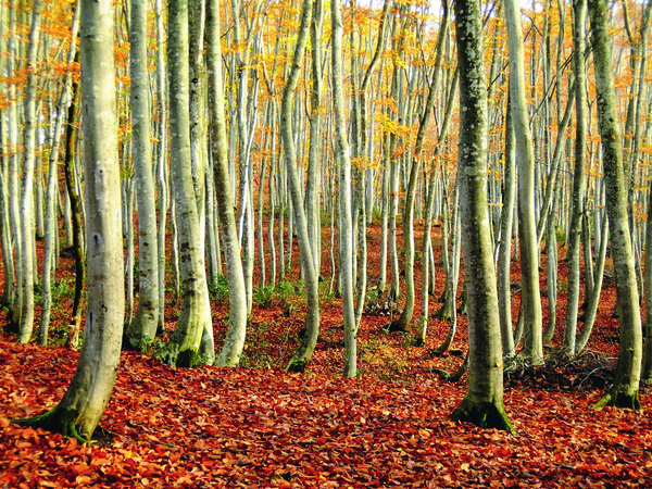 松之山の丘陵地約3haに広がる樹齢約100年のブナ林。すらりとした立ち姿が美しいことからその名がある。萌黄色の芽吹き、黄金色の紅葉と四季折々に美しく、起伏も少ないので歩きやすい。野鳥の宝庫でもある。