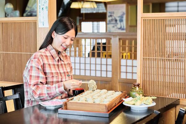 県内産の玄そばを石臼びきにし、布海苔をつなぎにした十日町名物のへぎそば。煮干しのダシが効いた濃いめのツユで喉越し抜群のそばを味わおう。地元では知る人ぞ知る名店なので、時間に余裕を持った訪問を。