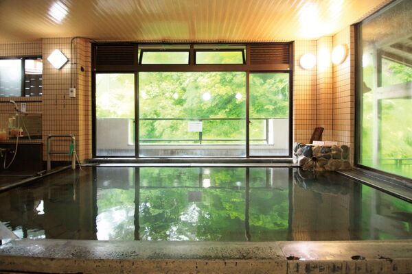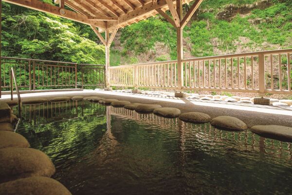 有馬、草津と並び、日本三大薬湯の一つとして名高い松之山温泉。その温泉街の中心部に位置する共同湯的な入浴施設。男女別大浴場のほか、小川に面した岩造りの露天風呂があり、共に開放感抜群だ。