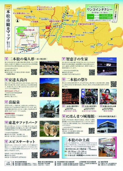 「二本松の菊人形」は、昭和30年から続く菊の祭典。藩政時代より菊の愛好者が多く、昭和初期から菊人形が街に飾られていたことに由来する。艶やかな菊の花と色づく紅葉が会場全体を埋め尽くす、日本最大級の菊の祭典として観光客を魅了している。