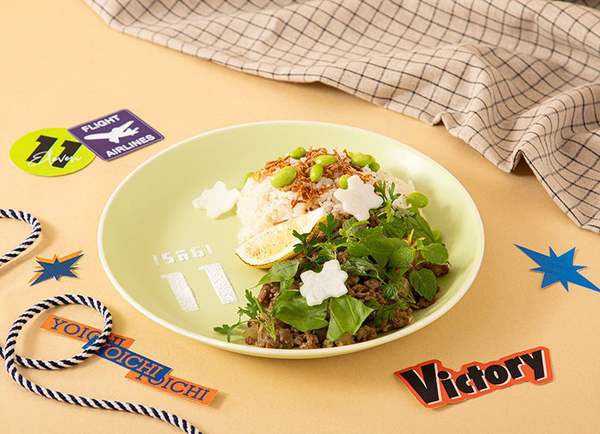 カフェのコンセプトは、キャラクター7人のそれぞれの旅。潔 世一をイメージした「豚肉のエスニックハーブプレート」や糸師 凛の「ミートパスタ」など多彩なメニューで各キャラクターの特徴を表現。ドリンクやスイーツも各キャラクターらしい趣向を凝らした品々がラインアップ。