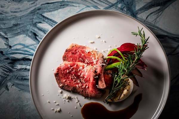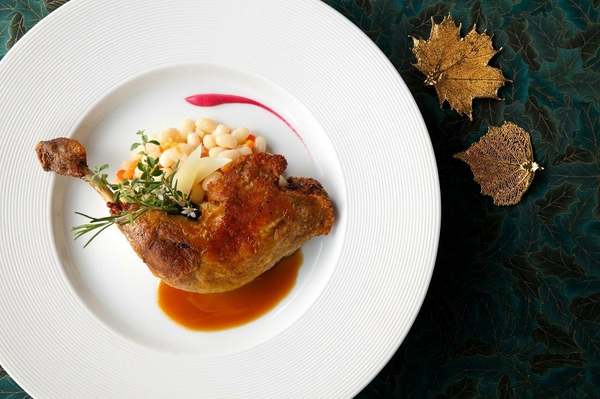 メインディッシュには、北海道・伊達市のブランド豚「伊達・黄金豚」のローストポークをはじめ、洋食の技が光る料理が並ぶ。ライブキッチンではローストビーフのカッティングして提供。一人一皿限定の合鴨腿肉のコンフィも見逃せない。デザートには長いケーキ「ロングブッシュドノエル」のテーブルサービスも行われる。