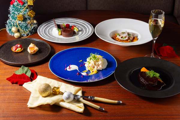 クリスマスディナーコースは、12月13日からの「バンカーレコース」(1人12,000円)と、12月20日からの「プレミアムコース」(1人16,000円)の2種類。冬の味覚を味わい尽くすフルコースのほか、ワインペアリングコースもある。