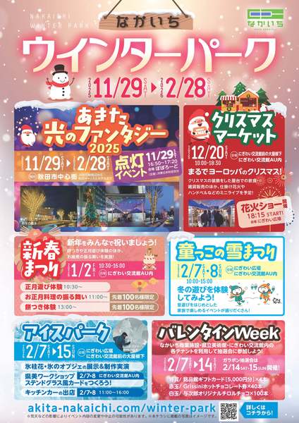 クリスマスからバレンタインまで冬イベントは全部ここで!秋田の冬を彩る「なかいちウインターパーク」【秋田自動車道 秋田中央ICから約5km】