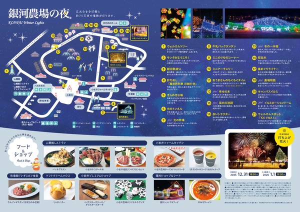 2026年1月18日まで、小岩井農場で「KOIWAI Winter Lights 銀河農場の夜」を開催中だ。大みそかと元日には花火も打ちあがる。
