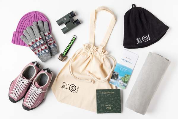 プランには自由に使える「星野エリアチケット」がセットになっているのもうれしい。旅の過ごし方を紹介した「ソロジャーナル」や防寒ブーツ、スキンケアセット、温泉タオルが付いているので、手ぶらで旅を始めることができる。