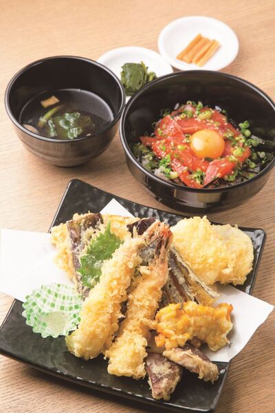 風味際立つ石臼びきの道産そば粉を使い、香り豊かな十割そばを提供。自社農園産の有機野菜を盛り込む天ぷらや自社養殖のトラウトサーモンの丼などサイドメニューも見逃せない。