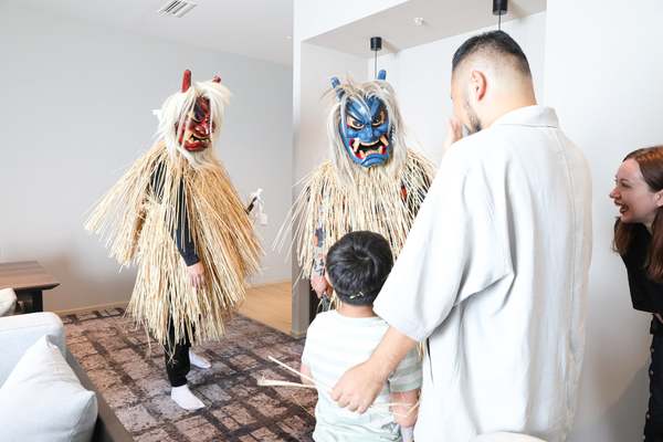 なまはげは秋田県男鹿市が発祥の伝統行事で、200年以上にわたって大晦日の夜に鬼の面とケデ(藁を編んだモノ)に身を包んでやってくる来訪神だ。なまはげが纏っているケデから落ちたワラは神聖なもので、魔除けになる、縁起が良い、病気をしない、健康になるとして、戸口に止めておいたり頭に巻いたりしてお守り代わりになる。