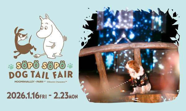 2026年1月16日から2月23日にかけて、「ムーミンバレーパーク」で犬と共に楽しむシーズナルイベント「SÖPÖ SÖPÖ DOG TAIL FAIR」が開催する。ムーミンの世界を愛犬と共に体感することができる特別なイベントだ。