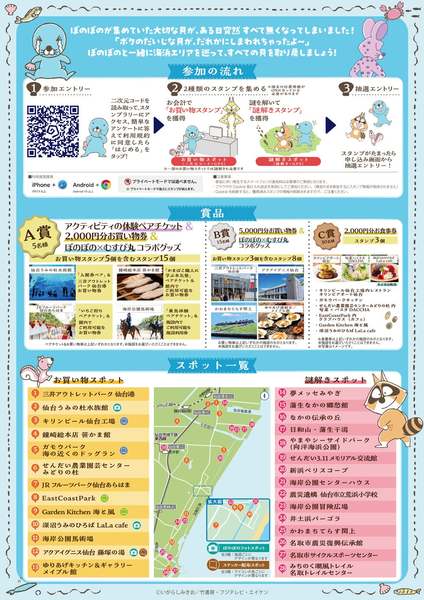 宮城県仙台市から名取市閖上地区にかけて、「ぼのぼのと巡る謎解き×ショッピング ぐるっと、海手スタンプラリー」が開催中だ。参加は無料で、開催期間は3月1日まで。