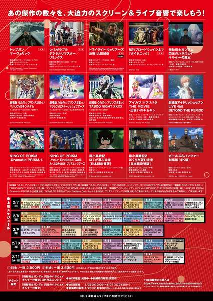 映画館にライブ・コンサート向けの大規模かつ高品質な音響機器をセッティングし、映画の“音”の臨場感を大迫力&ライブ感覚で楽しめるイベント。『トップガン マーヴェリック』や『機動戦士ガンダム 閃光のハサウェイ キルケーの魔女』、『劇場版 うたの☆プリンスさまっ♪ マジ LOVE キングダム』など、幅広いジャンルの全15作品が上映される予定だ。