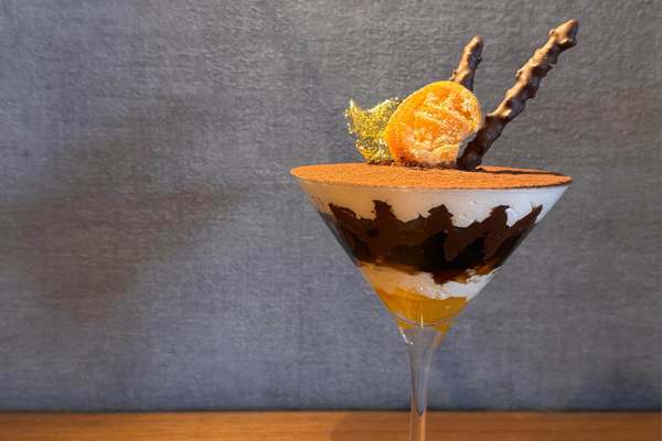特製ティラミスパフェは、マスカルポーネの甘味とコーヒーゼリーの苦味、オレンジピールの香りが絶妙にマッチした大人の味わい。中には砕いたクッキーがたっぷりと入っており、食感も楽しむことができる。