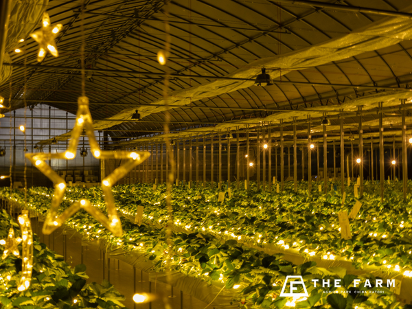 星空いちご園は、イルミネーションで彩られた幻想的な空間の中でいちご狩りを楽しめるところが特徴。今年は新たに「あまおとめ」品種を加えた全4品種を提供し、食べ放題の時間も40分から60分に拡大している。