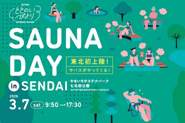 2026年3月7日、やまいちサステナパーク七北田公園で移動式サウナイベント「MIYAGI ととのいびより SAUNA DAY in SENDAI」を開催する。各地のサウナイベントで注目を集めている移動型サウナバス「サバス2号」が登場予定だ。参加費は3,700円(税込)から。