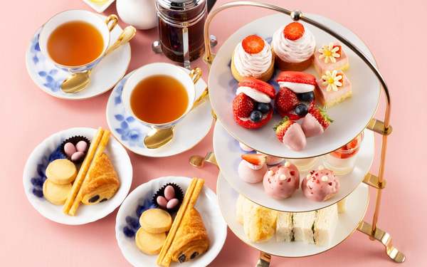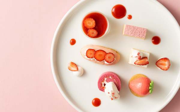 ロビーラウンジミザールでは「苺&ミルク」のアフタヌーンティーセットを提供する。12:00〜16:00に1日30食限定で提供し、価格は4,000円。苺ミルクヴェリーヌや苺大福、苺ミルクメレンゲなど、苺スイーツがたっぷり満喫できる。ホテルショップのザ・ベーカリー&ペイストリーでも、苺ミルクモンブランや苺ミルクキューブといった商品が棚に並ぶ。