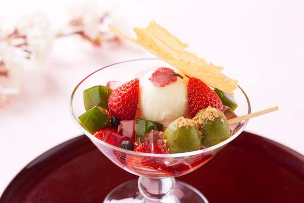 2026年5月6日まで、ホテルニューオータニ幕張の日本料理店「千羽鶴」で『あまおうと抹茶の和風パフェ ~桜恋~』を提供中。価格は2,300円(サービス料別途)。