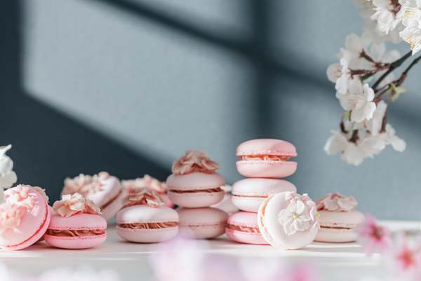 お花見のお供には「桜マカロン」がおすすめ。サイクリングを楽しみながら桜スイーツを味わいたい。花冠やヘアアクセサリー、リングなどの「桜アクセサリー」も用意しているので、いい写真が撮れそうだ。