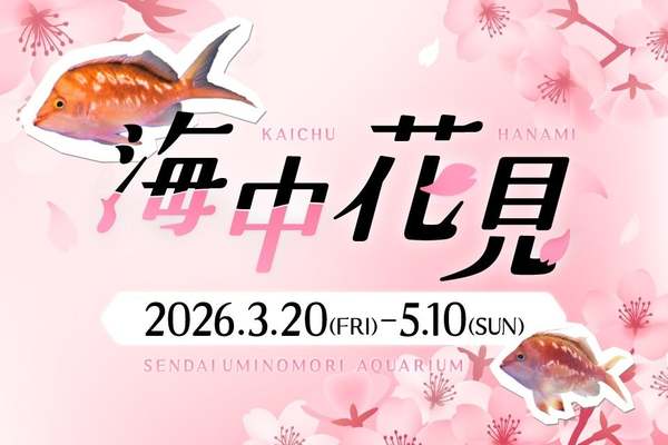 2026年5月10日まで、仙台うみの杜水族館でイベント「海中花見」を開催中。サクラダイが華麗に舞う特別水槽「SAKURA Aquascape」が最大の見どころだ。