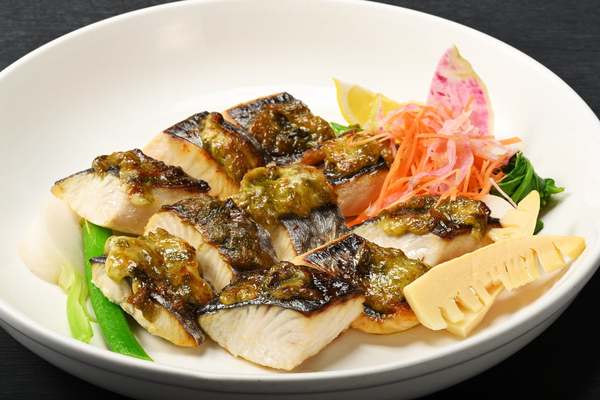 約300度の炎と遠赤外線効果を活かした富士の溶岩石の石窯で、肉や魚、野菜などを調理。「牛肉のグリル 大葉のジェノベーゼ」や「鰆のふき味噌焼き」など、春の恵みを使った40種以上のメニューが用意されている。