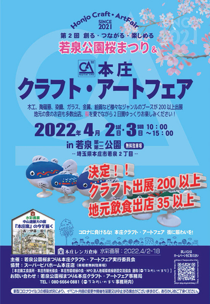 本庄市若泉第一・第二公園にて4月2日・3日に、「若泉公園桜まつり&本庄クラフト・アートフェア」が開催される。
